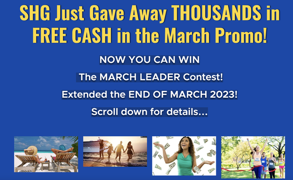 SHG is going to help you finish March with EXTRA MONEY IN YOUR POCKET! We have all the tools you need to succeed, all you have to do is SHOW UP and TAKE ACTION!Â