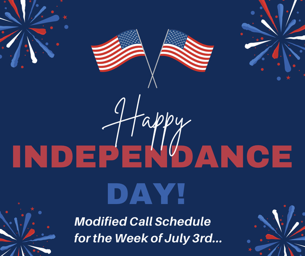 We will resume our normal call schedule starting on Wednesday 7/5.