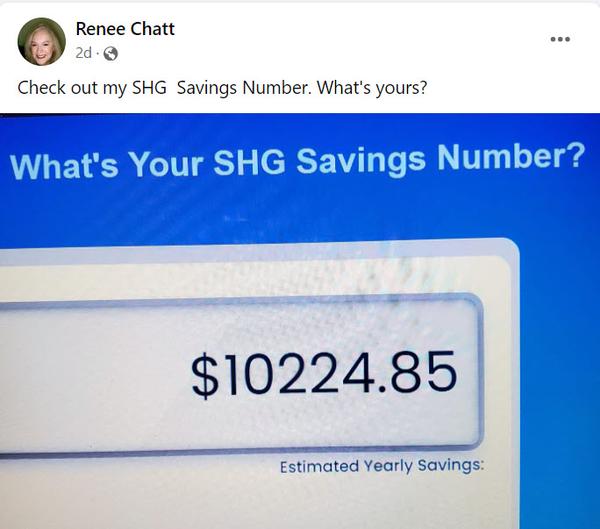 TAKE SUCCESS STEP #3What's Your SHG Savings Number? Try SHGCalculator.com and Post Your Savings Number on our Group Facebook Page!